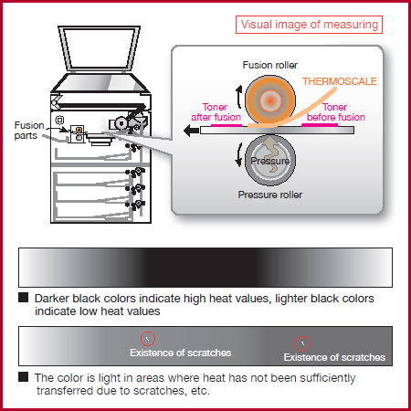 Thermoscale 100 allows for the detection of thermal irregularities and/or scratches on the fuser roller surface.